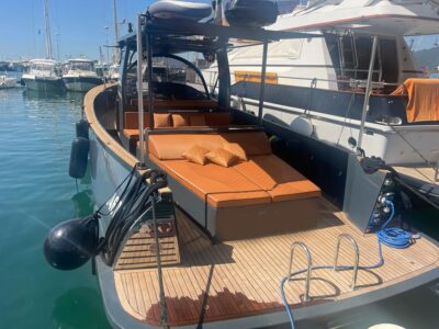 Completamente restaurato e revisionato in ogni sua parte nel 2023/2024, spese dimostrabili, tappezzerie e tendalini nuovi – Chiusura totale plancia comando nuova. Strumentazione elettronica nuova. Motori e generatori sbarcati, ecc. Il ponte “all around” dello yacht sfrutta lo spazio esterno e consente a 12 ospiti a bordo in tutta comodità e sicurezza.