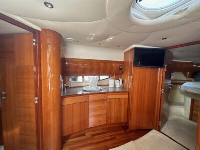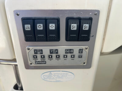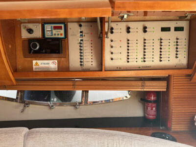 Bussola, Ecoscandaglio, GPS Plotter Raymarine, Pilota automatico Raymarine, Radio VHF Raymarine (strumenteazione elettronica nuova 2024)- Generatore Mase da 5kW revisionato totalmente 2023 – Caricabatterie – Doccia esterna – Garage per tender – Luci di cortesia – Passerella (Idraulica) – Pozzetto Teak – – BBQ/grill – Boiler – Impianto acque nere – WC marini elettrici – Impianto TV – Stereo – Congelatore – Cucina con piano cottura a gas – 2 Frigoriferi esterno e interno – Forno a microonde – Cuscineria completa di poppa-prua e interna nuova – Teli chiusura – Telo copri consolle – Tendalino nuovo