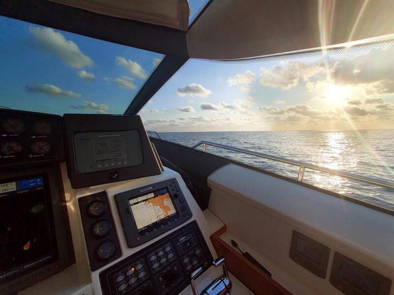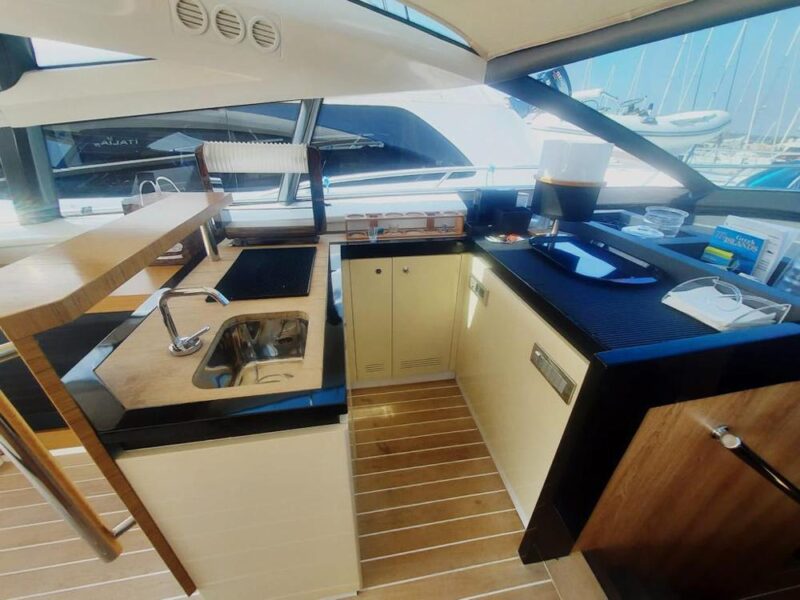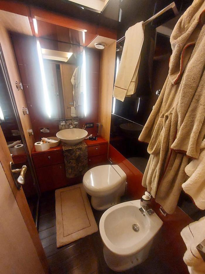 Radar e plotter Raymarine – Raymarine GPS radar grafico plotter display – Scanner radar a matrice aperta Raymarine – Controllo autopilota Raymarine – Trasduttori di velocità e profondità Raymarine – Bussola – Sistema TV satellitare – Eliche di prua – Piattaforma idraulica ad alta quota – Tender garage – n. 2 Generatori da 20 kw – Dissalatore ad osmosi inversa – Impianto di condizionamento completo in ogni ambiente – Cucina elettrica – Lavatrice/asciugatrice – ecc.