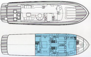 Cabina armatoriale matrimoniale con bagno; Cabina Vip matrimoniale con bagno;