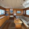 Sistemazione: disposizione a 4 cabine con letti Pullman in 2 cabine e zona pranzo pieghevole in letto (12 posti letto) + 2 cabine equipaggio – Doppia ancora allestita con catena da 120 m per lato