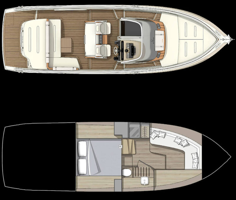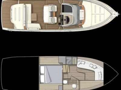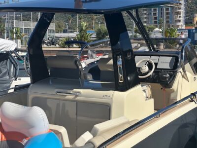 Altoparlanti, Aria condizionata (10.000 BTU), Boiler, Cuscineria completa, Cuscineria di poppa, Cuscineria di prua, Cuscineria Pozzetto, Impianto TV, Prese interne 12v, Prese interne 220v, Radio AM/FM, Stereo, Tendalino, TV, Angolo barra, Caricabatterie, Colorazione speciale (Personal White), Doccia esterna, Elica di prua – bow thruster, Lavandino nel Pozzetto, Luci di cortesia, Luci subacquee, Passerella, Piattaforma, Presa 220V banchina, Presa acqua banchina, Salpa Ancore Elettrico, Scaletta da bagno, Tavolo pozzetto, T-Top (in carbonio) Bussola, Comando motori elettronico, Ecoscandaglio, GPS, Pilota automatico, Plotter con antenna GPS, Radio VHF, Tromba