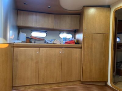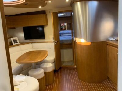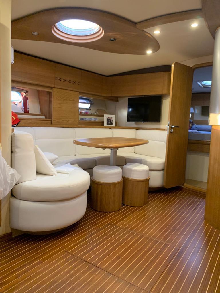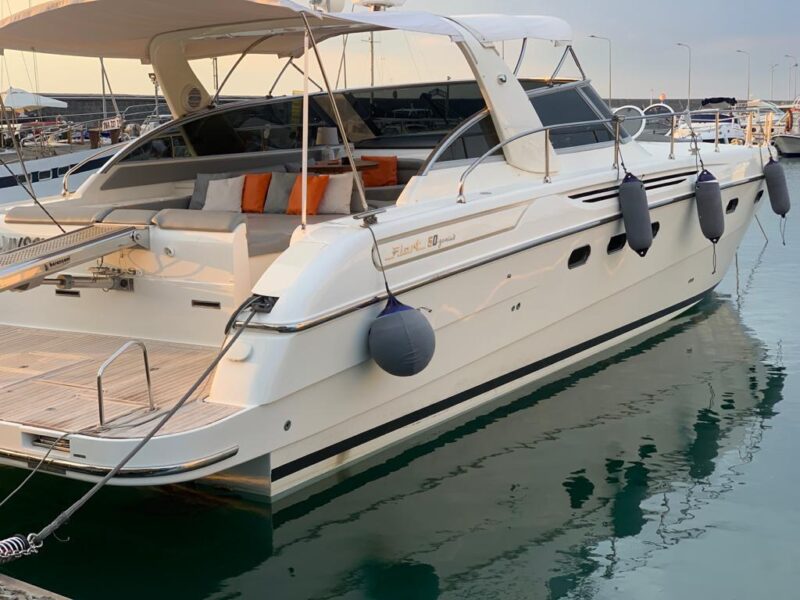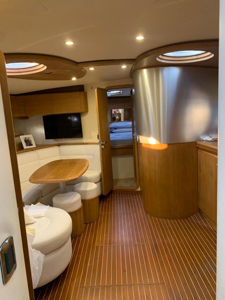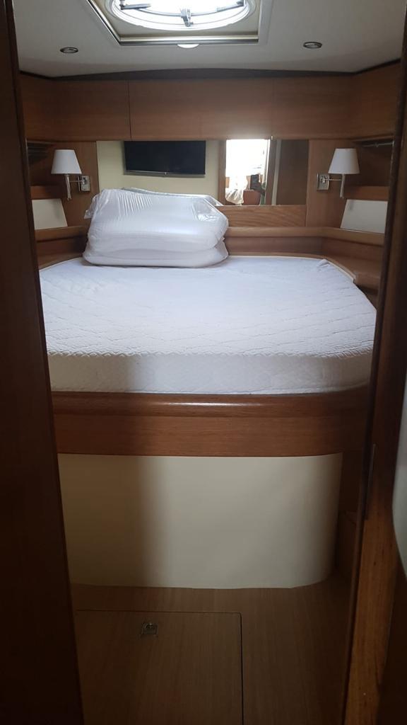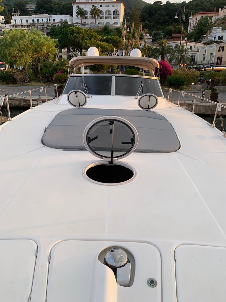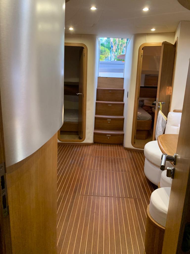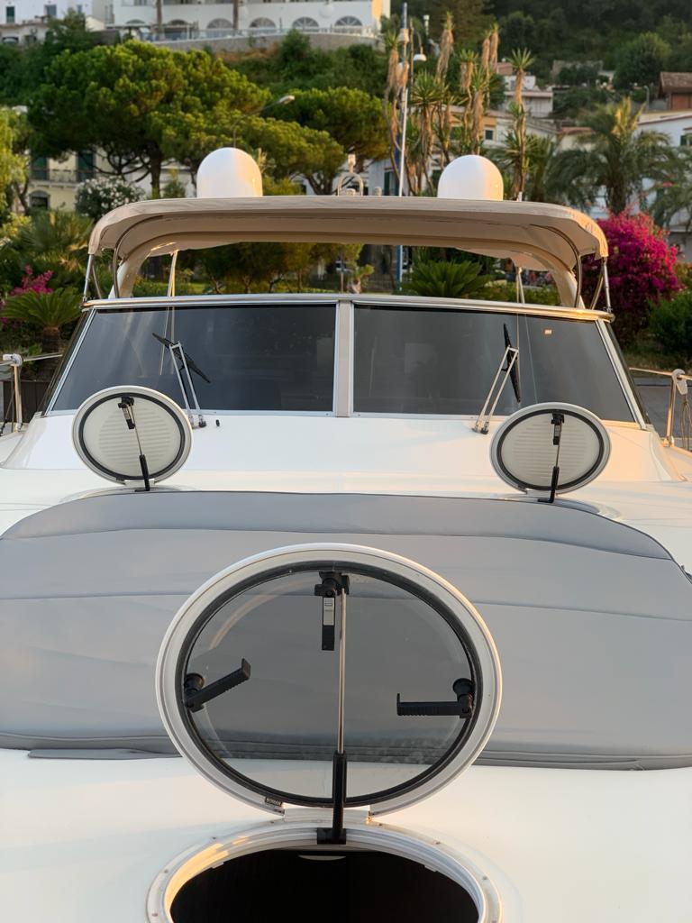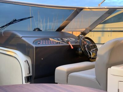 Gps – Pilota automatico – Ecoscandaglio – Flap idraulici – Radar – Aria condizionata climatizzata – Gruppo elettrogeno Mase – Raddrizzatore automatico – Faro sport – Frigo interno/esterno – grill esterno – forno microonde – antenna satellitare con TV – passerella idraulica telecomandata – pavimento interno cicliegio e acero – luci led di cortesia – impianto Dolby surround – Cabina equipaggio separata con servizi propri – refitting totale 2019/2020