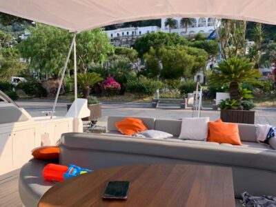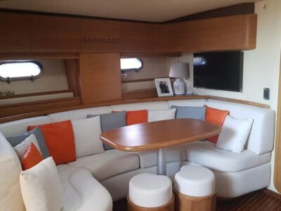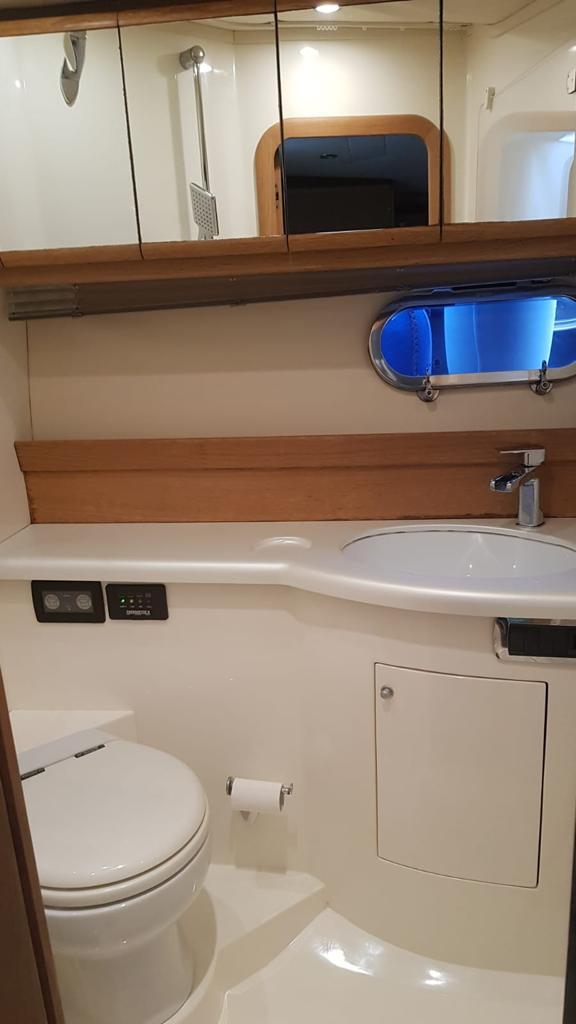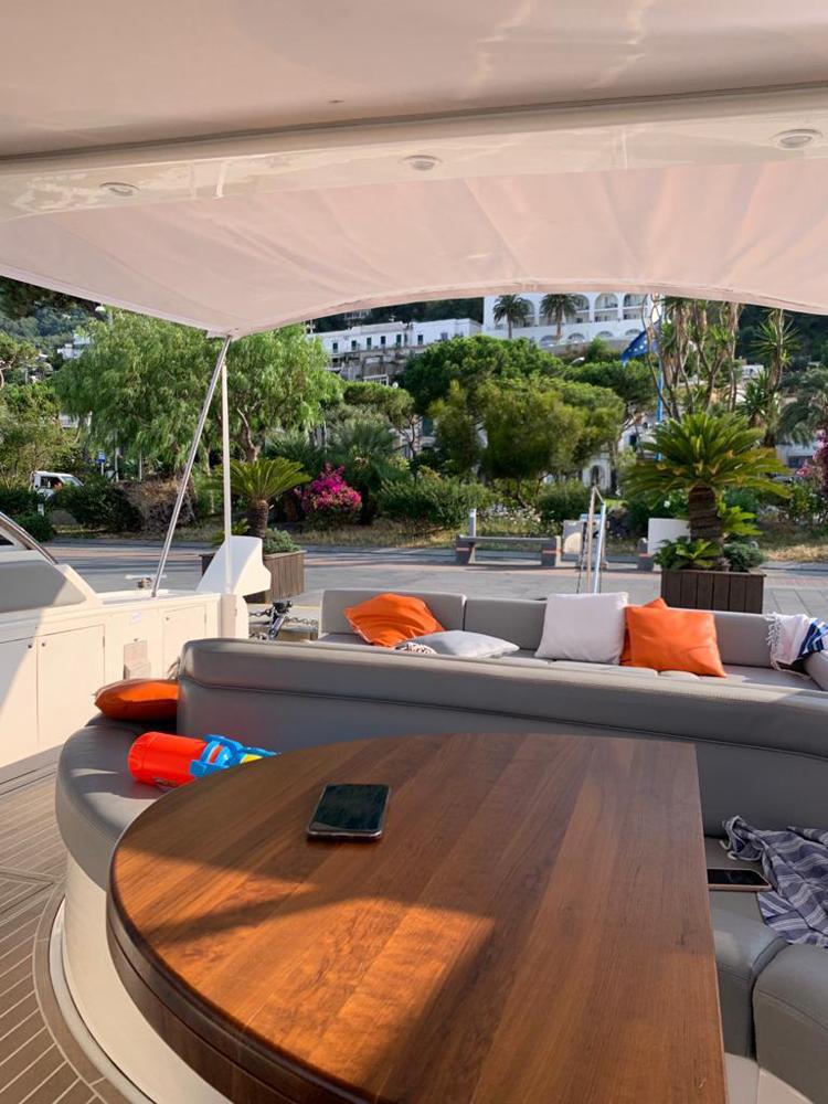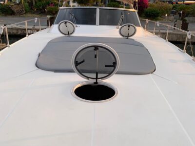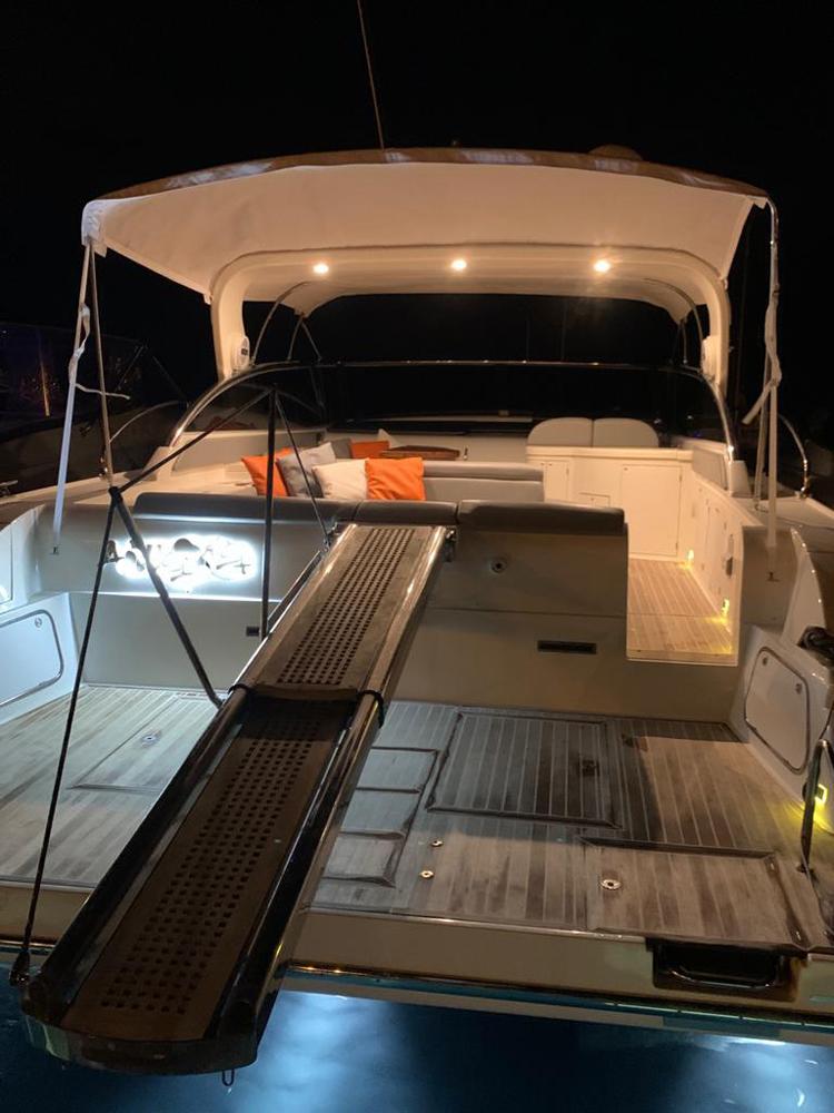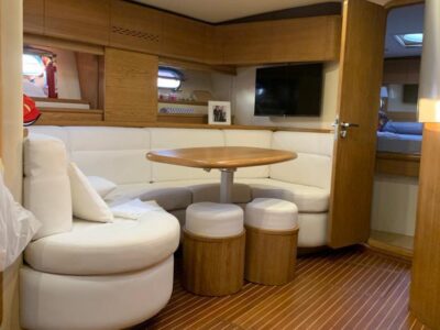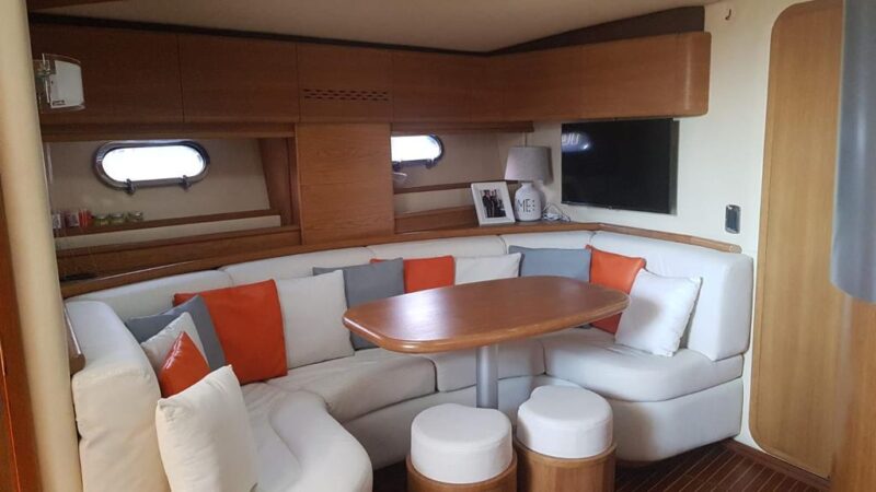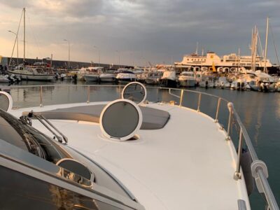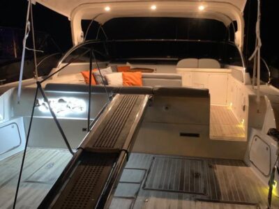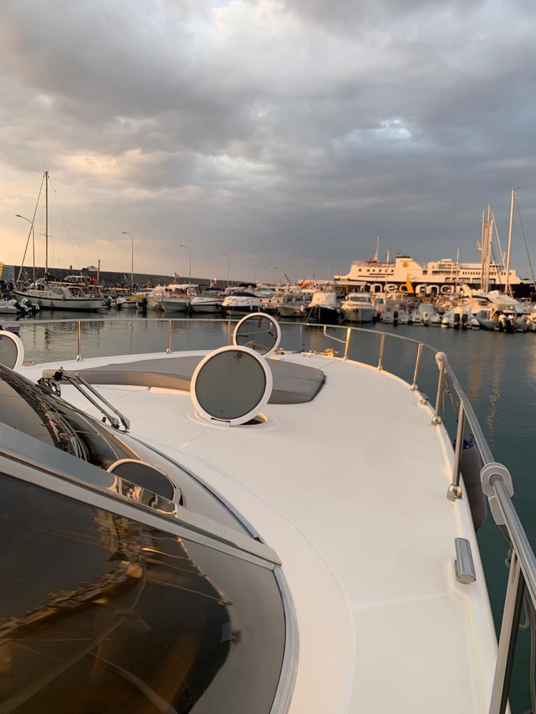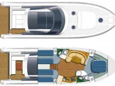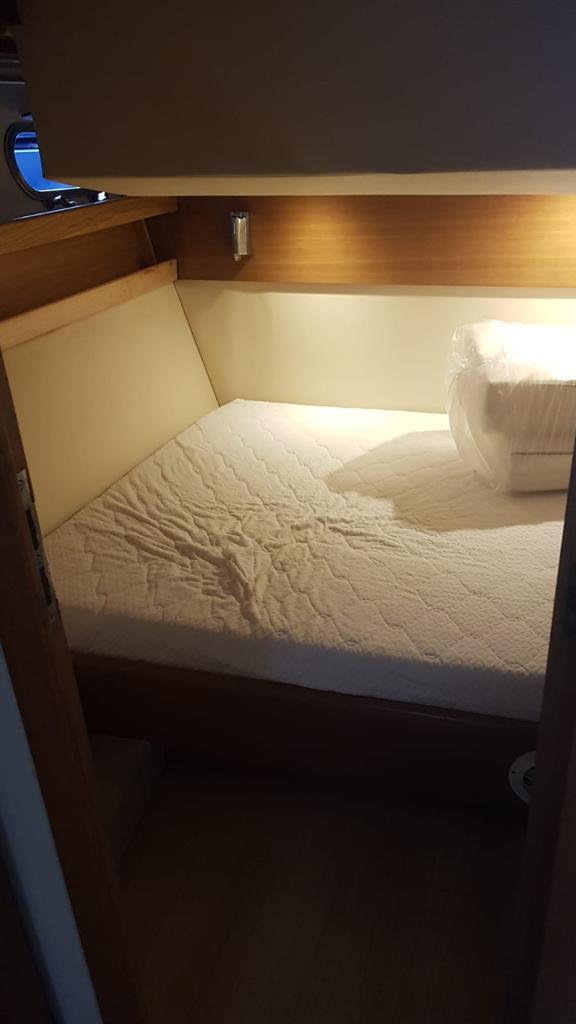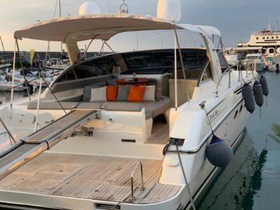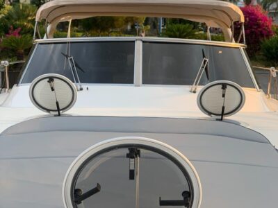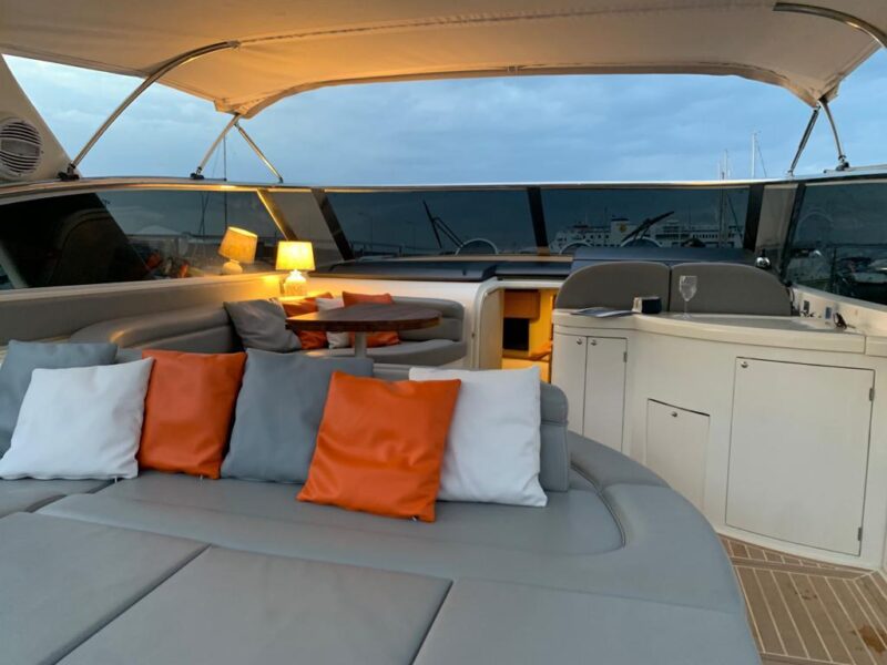 Gps – Pilota automatico – Ecoscandaglio – Flap idraulici – Radar – Aria condizionata climatizzata – Gruppo elettrogeno Mase – Raddrizzatore automatico – Faro sport – Frigo interno/esterno – grill esterno – forno microonde – antenna satellitare con TV – passerella idraulica telecomandata – pavimento interno cicliegio e acero – luci led di cortesia – impianto Dolby surround – Cabina equipaggio separata con servizi propri – refitting totale 2019/2020