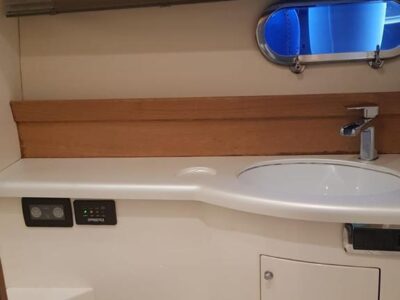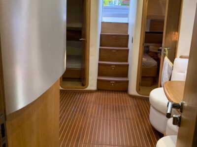 1 cabina armatoriale matrimoniale – 2 cabine ospiti con letti in piano – 2 bagni con doccia