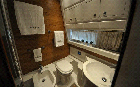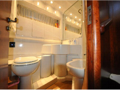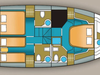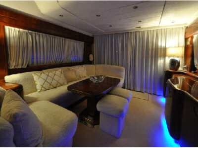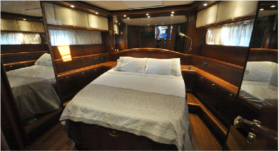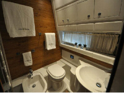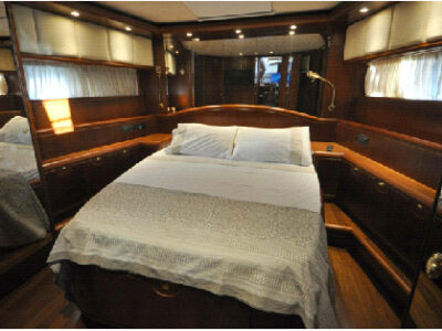 Ampio soggiorno con divano a U, tavolo e mobile bar con TV a schermo piatto • Cucina al piano inferiore con piano cottura a induzione a 4 fuochi, forno a microonde, frigorifero • 4 cabine: • 1 cabina armatoriale matrimoniale con bagno privato con doccia e TV • 2 cabine ospiti con TV a schermo piatto e bagno con doccia, ciascuna con 2 letti singoli trasformabili in 1 letto matrimoniale • 1 cabina ospiti a poppa con due letti singoli e bagno con doccia • Sistema di navigazione integrato raymarine • Telecamere di sicurezza • Sistema Internet / Wi-Fi • Impianto TV • Luci a LED • Radio VHF • Generatore Kohler da 12 kW • Aria condizionata caldo / freddo • Elica di prua e di poppa • Faro elettrico Sanshin HR1012 • Passerella idraulica • Verricello di stazza • TV / radio in tutte le cabine; Cabina armatoriale al sicuro • Tendalino • Tender Novamarine RH 320 con motore Mercury 20 CV 4 tempi • Ancora Bruce • Poppa in teak • 4 frigobar • Tappezzerie nuove • Luci subacquee • Dotazioni di sicurezza complete