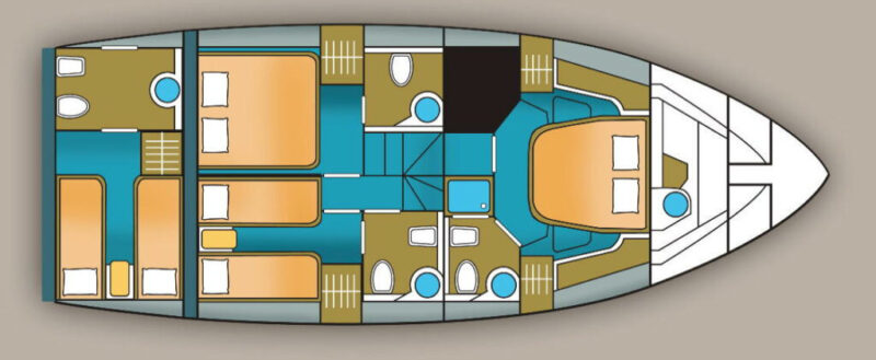 Il Technema 60 è la soluzione ideale per le crociere nel Mar Mediterraneo. Dispone di 4 cabine che possono ospitare fino a 8 persone, un ampio soggiorno con TV a schermo piatto, cucina, prendisole a prua e una zona salotto a poppa. Il M/Y è dotato dei più moderni sistemi di navigazione per viaggiare in sicurezza. Bassi consumi