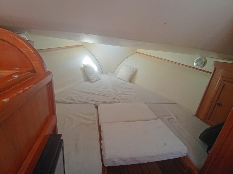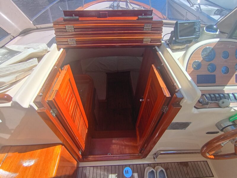 Cuscineria completa, Cuscineria di prua, Cuscineria Pozzetto, Frigorifero interno, Prese interne 12v, Prese interne 220v, Radio AM/FM, Telo copriconsolle, WC marino elettrico,